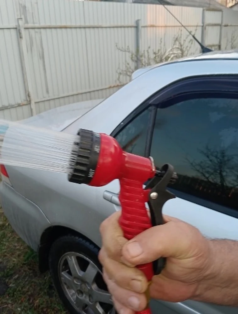 Очень доволен покупкой! Шланг невероятно удобный, не перегибается и не спутывается. Насадка с разными режимами – это супер, можно выбрать нужный напор воды. Использую и для полива, и для мытья машины.