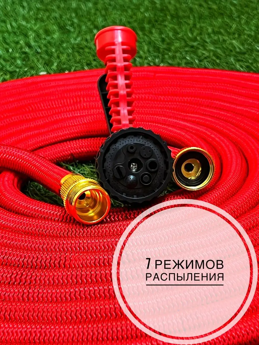 Саморастягивающиеся шланги оснащены многофункциональными распылителями с 7 режимами подачи воды. Это позволяет не только поливать растения, но и мыть машину, дорожки, фасад дома. Эргономичная ручка и фиксатор облегчают использование, а прочные уплотнительные резинки гарантируют герметичность соединений.